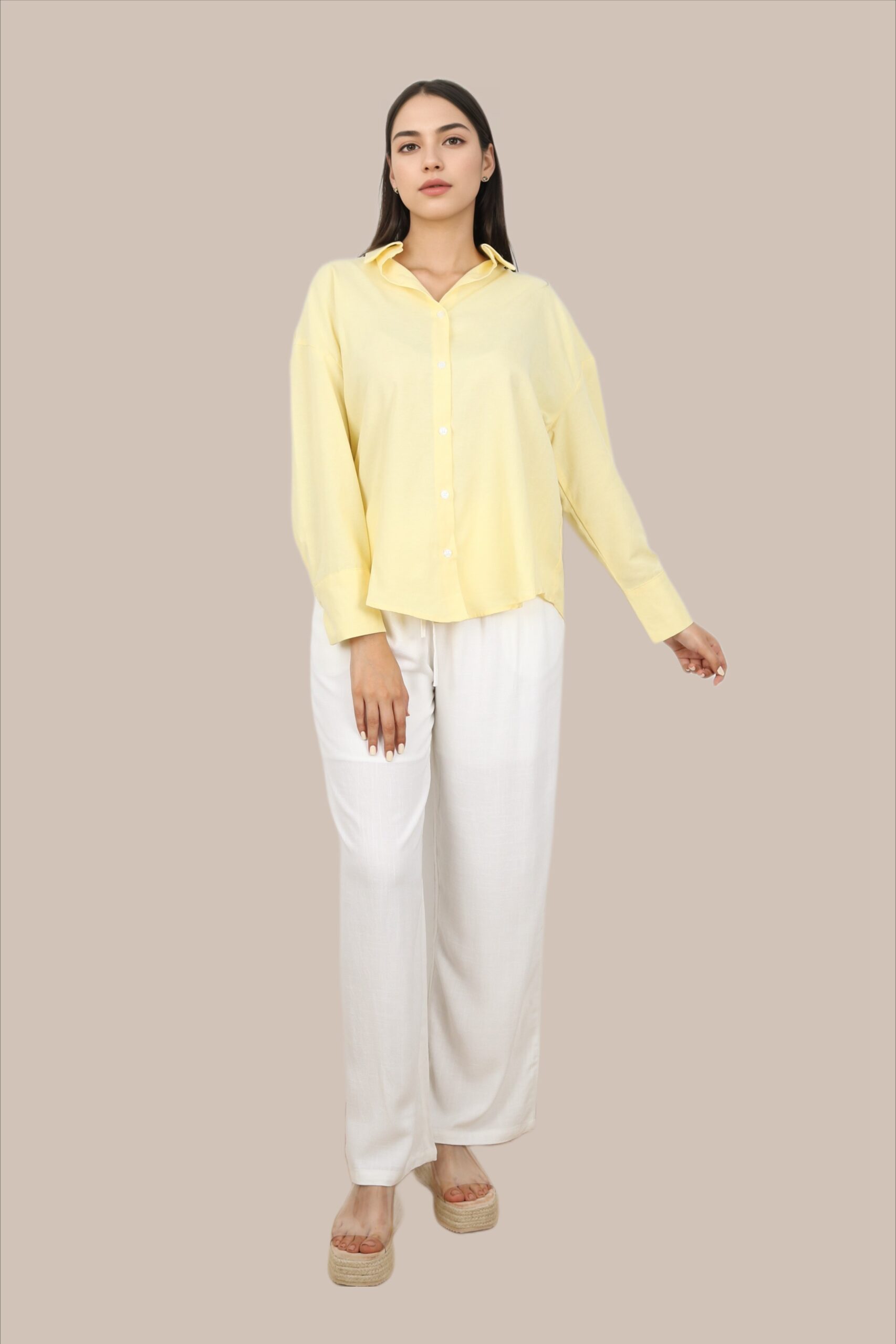 - Tissu effet lin, léger et respirant.