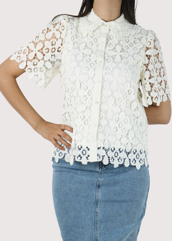 - Chemise à manches courtes en dentelle ajourée.
