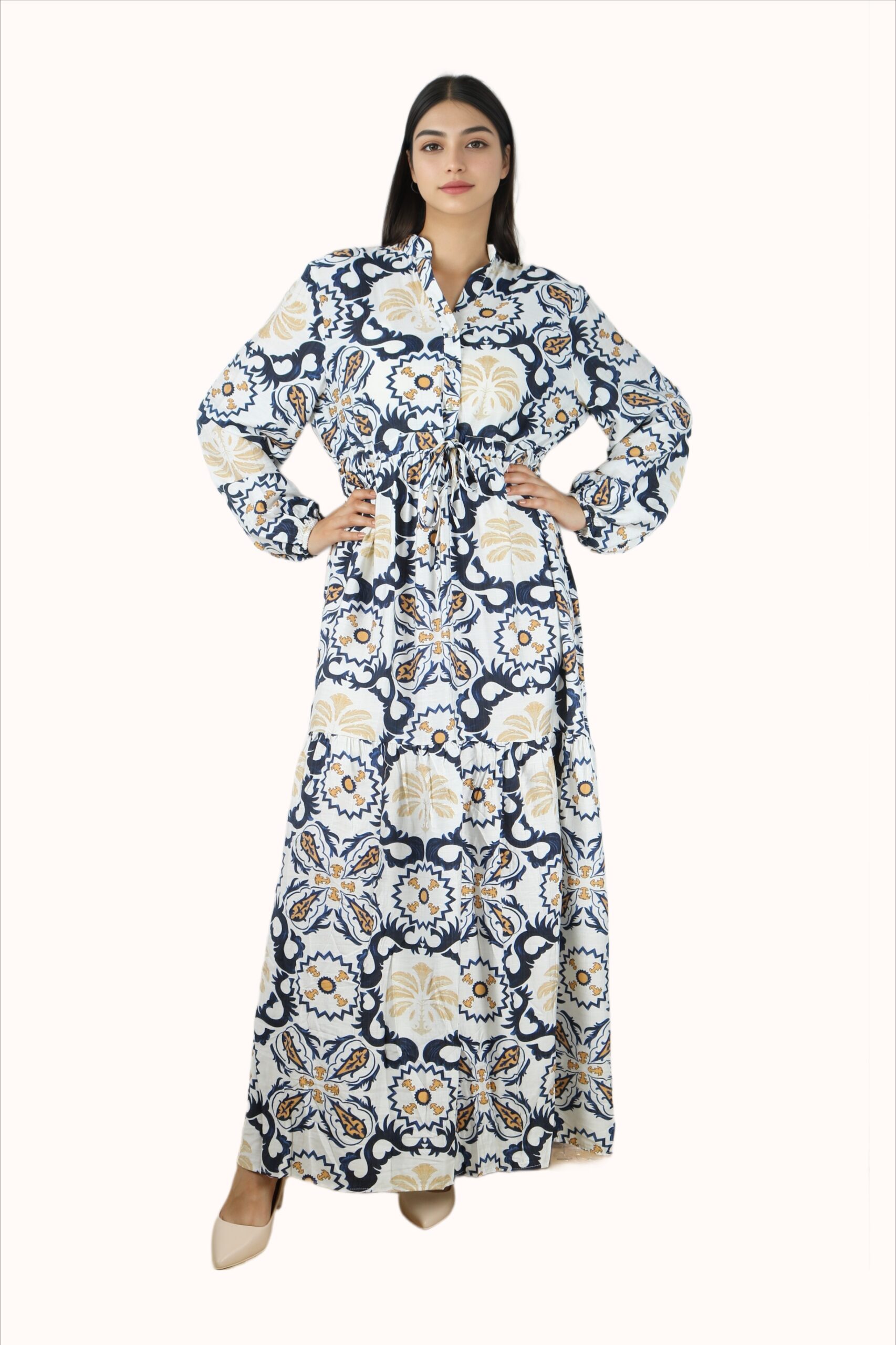 129.900 TNDVue Rapide- Robe longue fluide, coupe évasée avec finition plissée pour un tombé élégant et une belle liberté de mouvement.