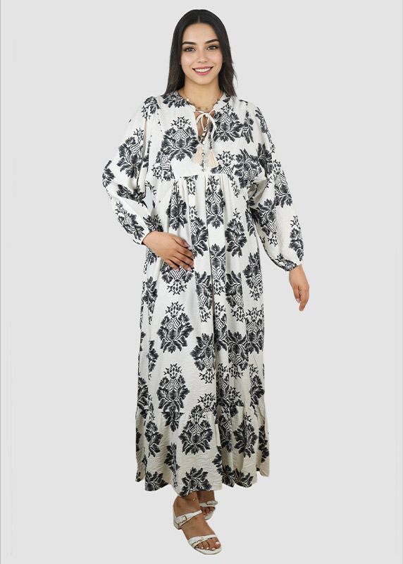 - Robe longe fluide, coupe évasée avec finition plissée pour un tombé élégant et une belle liberté de mouvement.