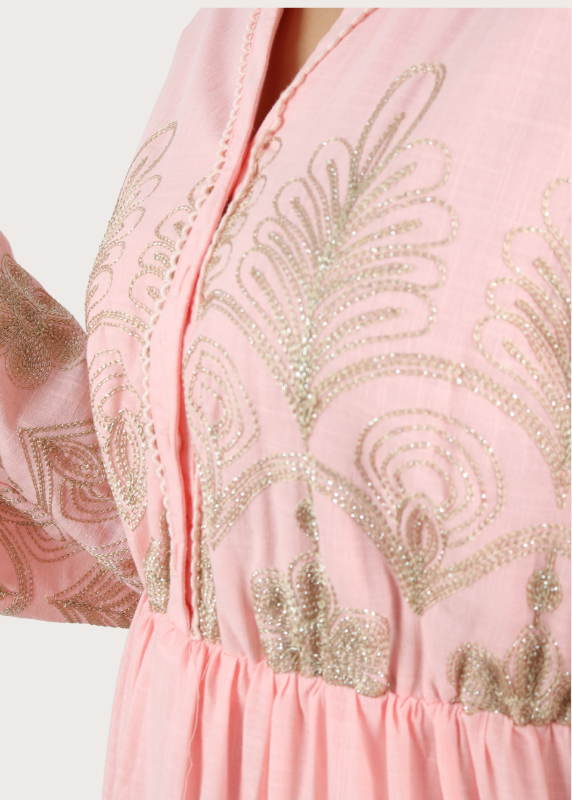 - Ceinture ton sur ton à nouer à la taille pour souligner la silhouette tout en apportant du confort.