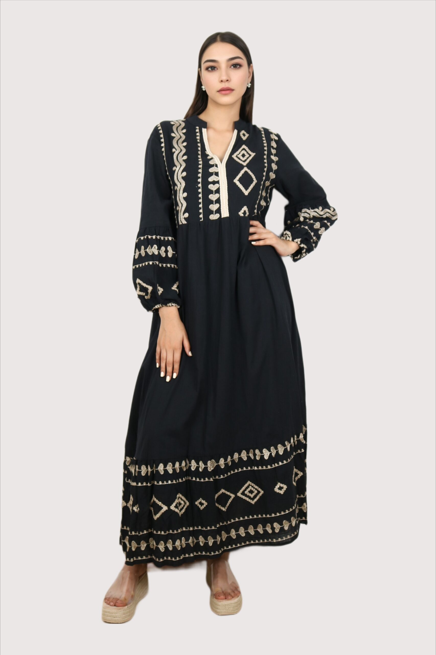 149.900 TNDVue Rapide- Robe longue fluide, coupe évasée avec finition plissée pour un tombé élégant et une belle liberté de mouvement.