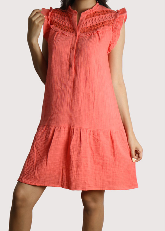 - Robe courte fluide, coupe évasée avec finition plissée pour un tombé élégant et une belle liberté de mouvement.