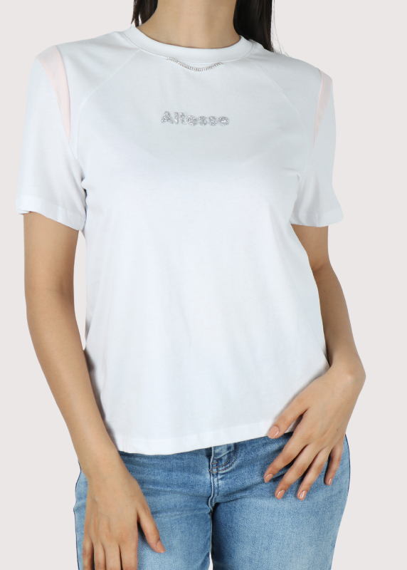 - Manches courtes et encolure ronde classique.