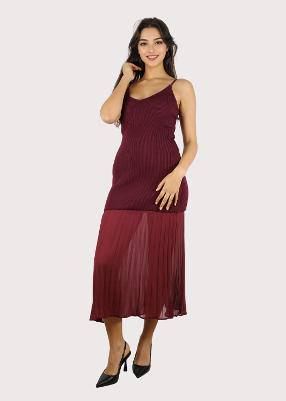 • Matière : Haut en maille côtelée extensible et bas en voile léger.