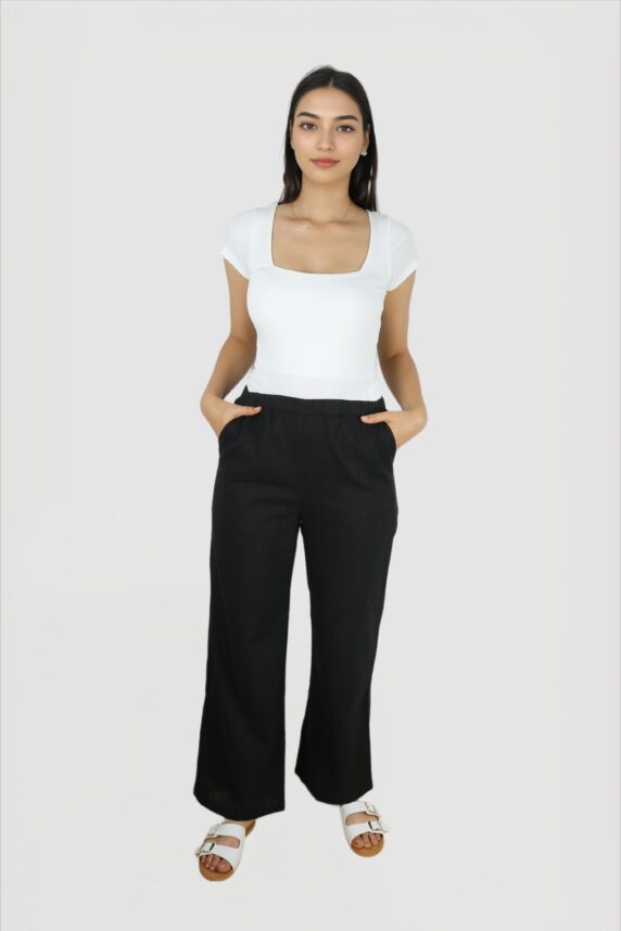 - Pantalon évasé à taille haute en tissu extensible ultra confortable.