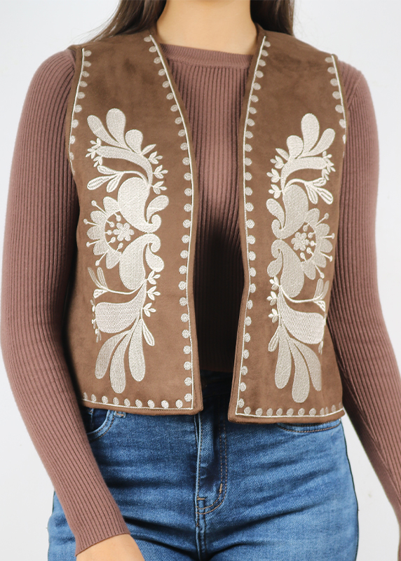 Matière : Corps de la veste confectionné dans une suédine douce au toucher.