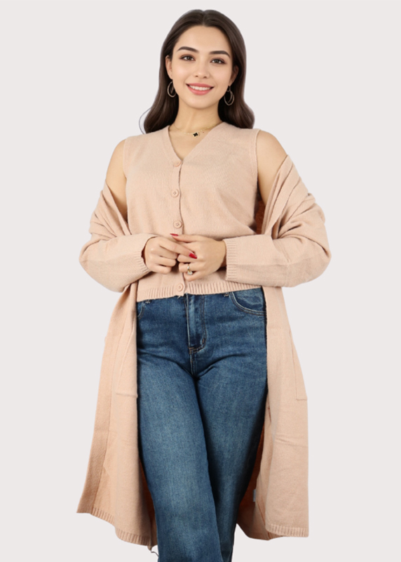 • Détails : Texture douce, boutons ornés, et poches pratiques.