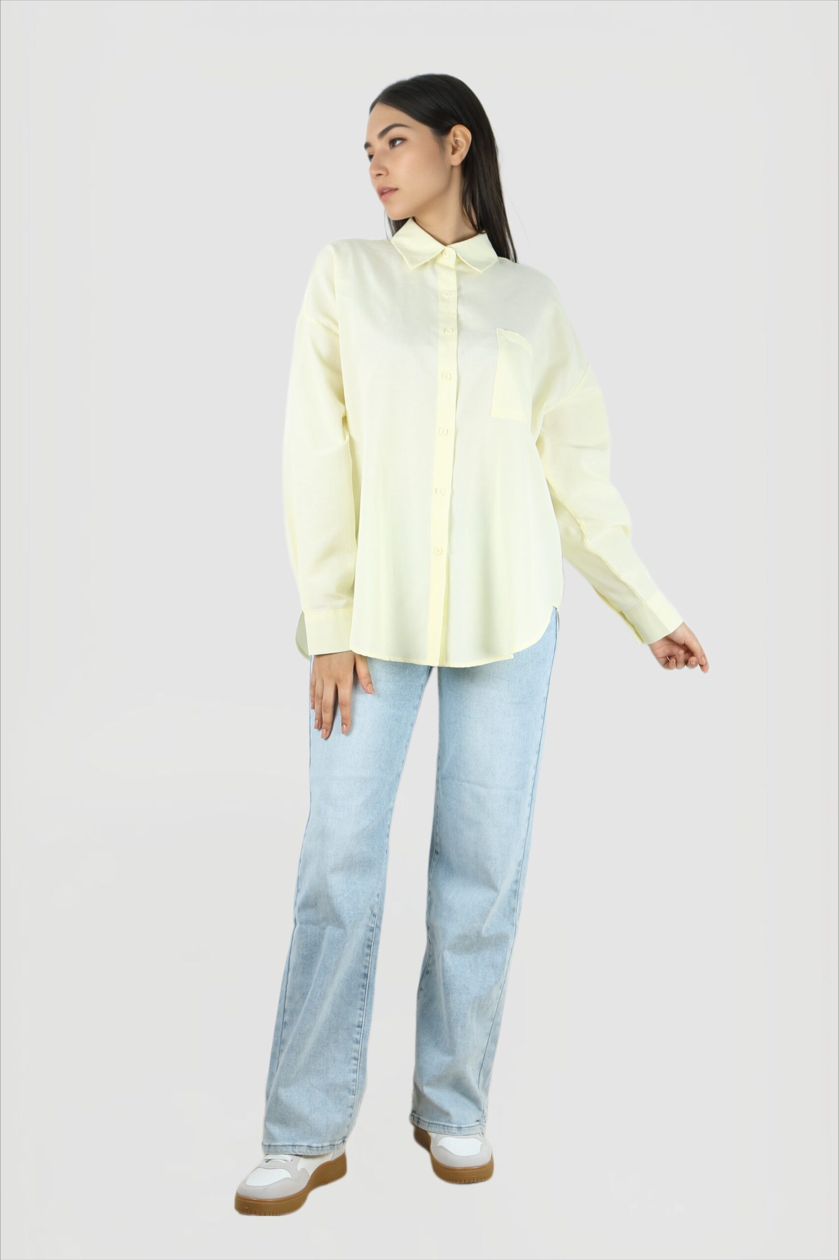 - Haut ample à manches longues, coupe droite avec un col rond classique, pour un confort optimal tout au long de la journée.