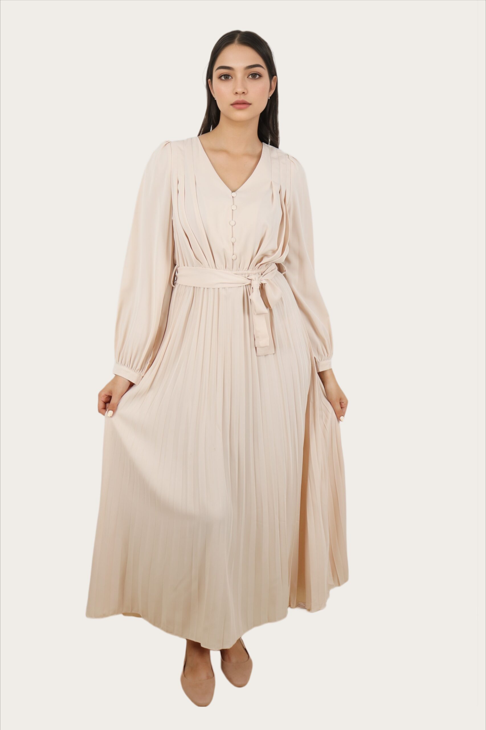 139.900 TNDVue Rapide- Robe longue fluide, coupe évasée avec finition plissée pour un tombé élégant et une belle liberté de mouvement.
