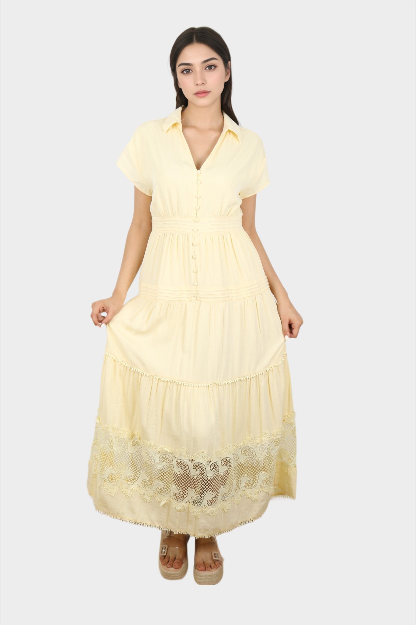 - Robe longue fluide, coupe évasée avec finition plissée pour un tombé élégant et une belle liberté de mouvement.