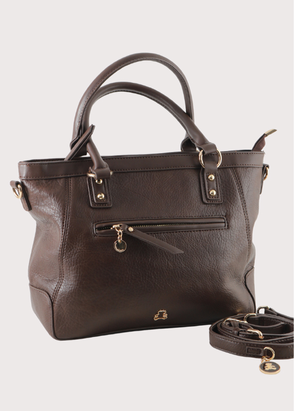 - Porté à l’épaule avec de grandes anses ou en bandoulière.