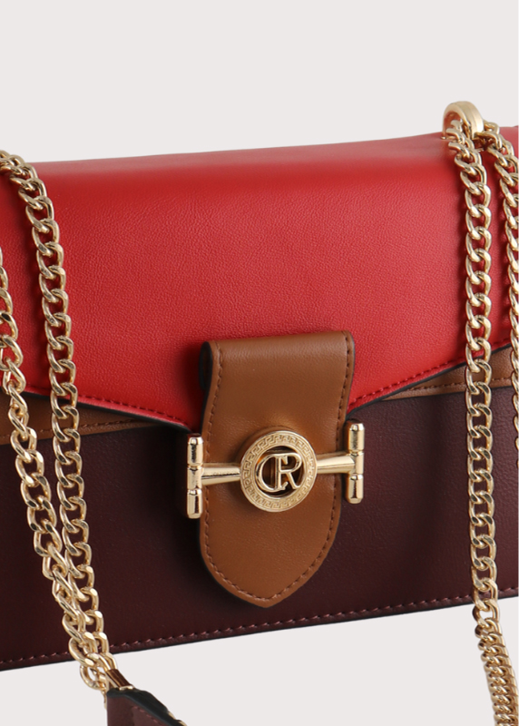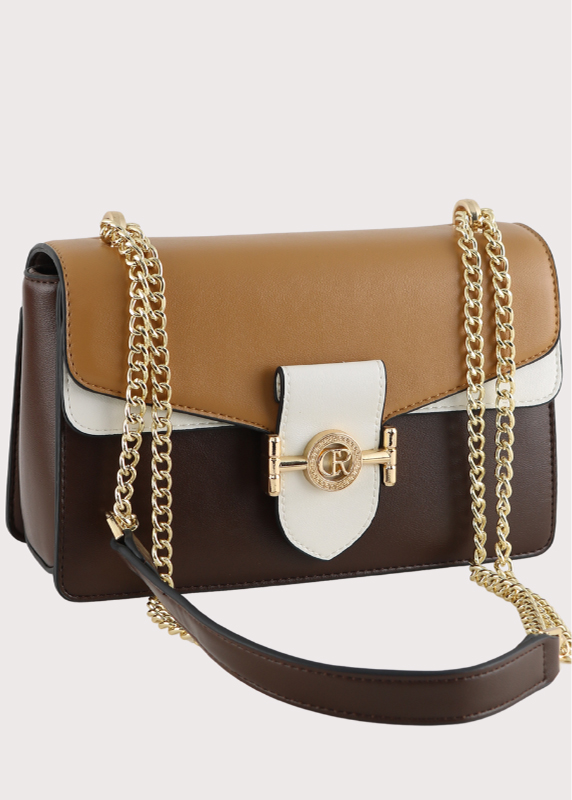 - Fermeture à rabat avec un grand fermoir métallique doré.