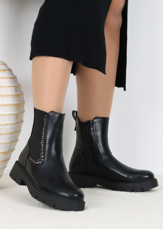 • Une paire de bottines en similicuir noir.