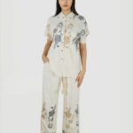 • Composé d’un gilet sans manches à col en V et d’un pantalon fluide à taille haute.