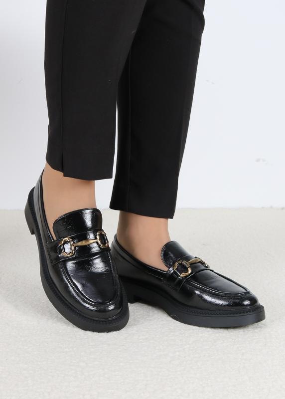 • Mocassins noirs en cuir lisse au design épuré et intemporel.
