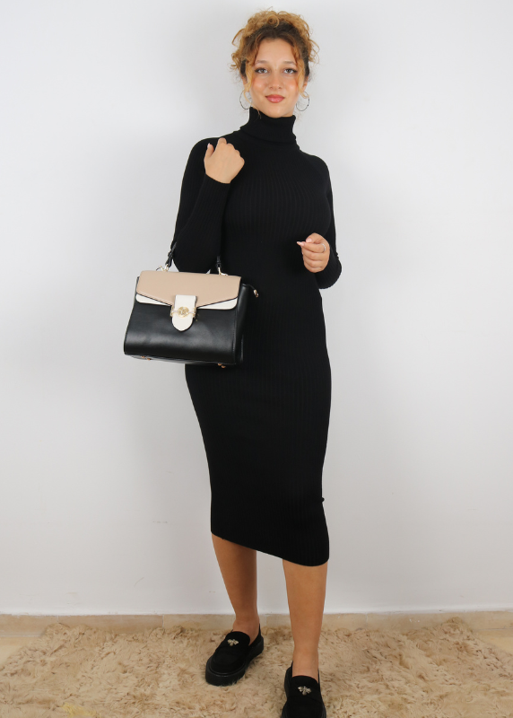 Cette robe midi en maille côtelée est élégante et confortable, parfaite pour les saisons fraîches. Dotée d’un col roulé et de manches longues, elle offre un style intemporel. Sa coupe ajustée met en valeur la silhouette, et sa longueur mi-mollet ajoute une touche de sophistication. Polyvalente, elle peut être portée aussi bien pour des occasions décontractées que pour des événements plus habillés, en s’adaptant facilement à différents styles et accessoires.