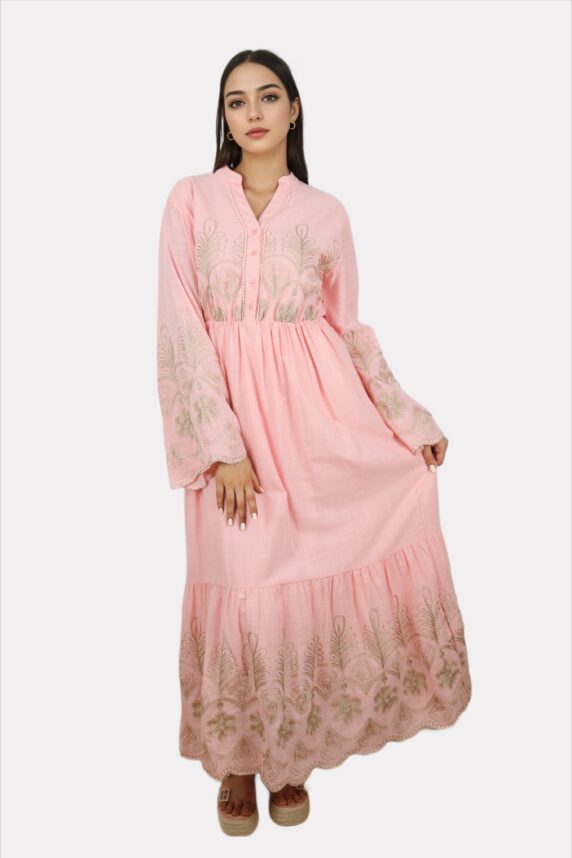• Robe longue fluide, coupe évasée avec finition plissée pour un tombé élégant et une belle liberté de mouvement.