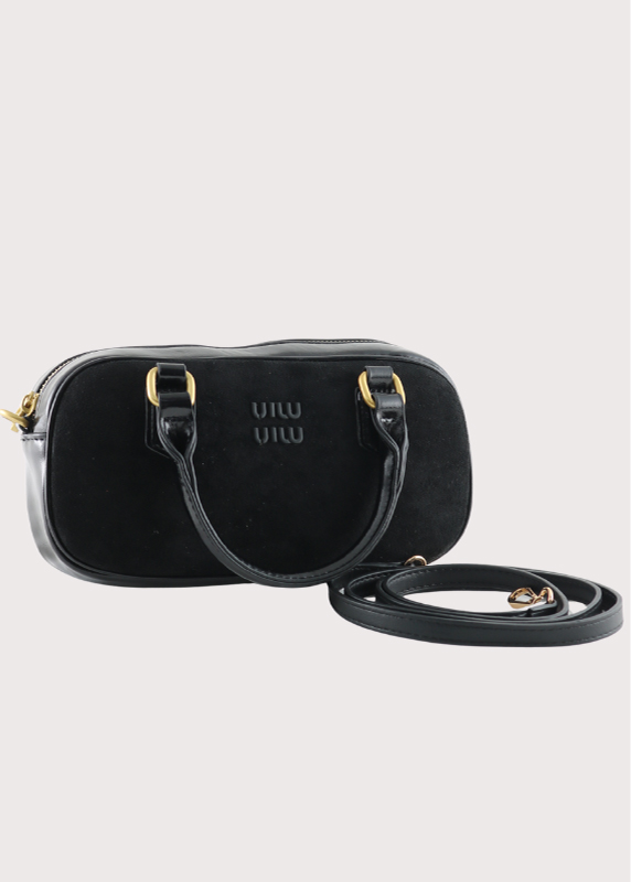 Design élégant combinant un aspect suédine doux et des finitions vernies.