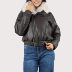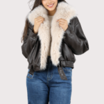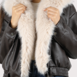 • Col : Elle possède un très grand col en fourrure claire et poilue.