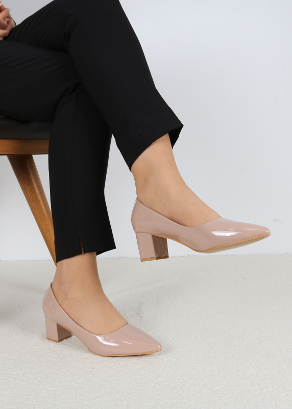 - Escarpins en simili avec un effet vernis.