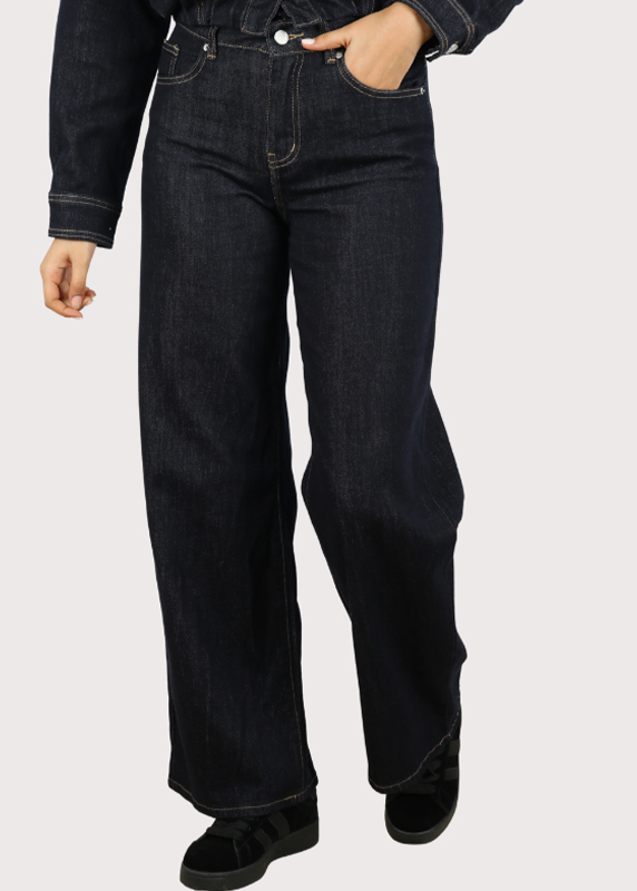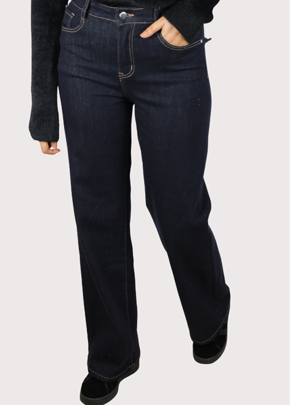 - Pantalon en jean à coupe large et droite.