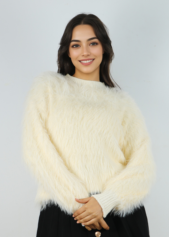 Matière : Un pull en maille ultra douce à effet fourrure, très chaud et duveteux.