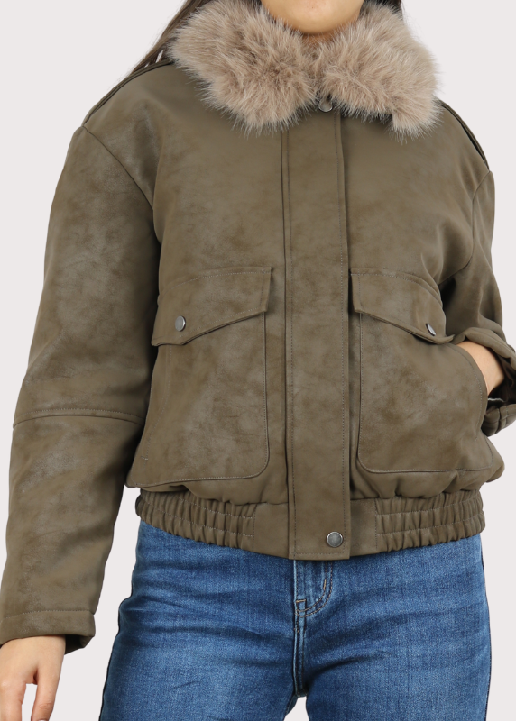 Détails : Revers en fourrure aux poignets et deux poches sur les côtés.