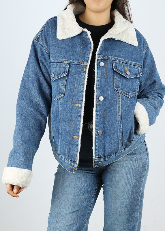 - Veste jeans avec doublure en fourrure synthétique beige