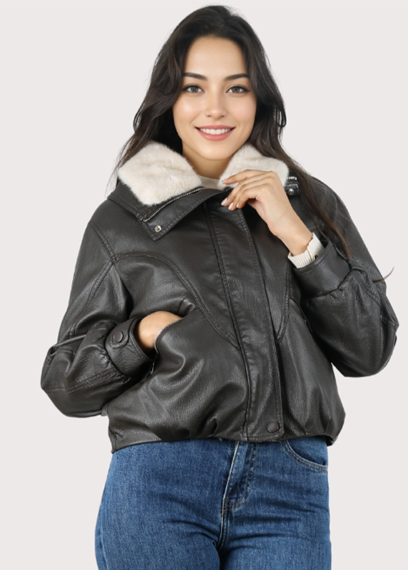 Col : Elle a un col en fourrure de la même couleur que la veste.