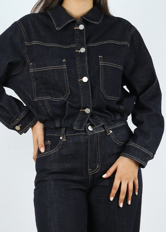Style : Un look denim moderne et dynamique, idéal avec un pantalon taille haute.