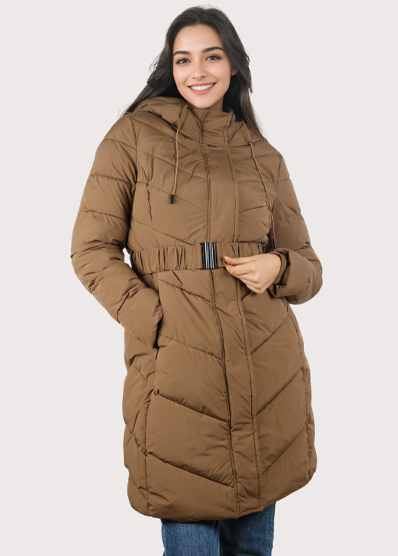 Style : C’est une doudoune longue et cintrée avec un motif de coutures horizontales.