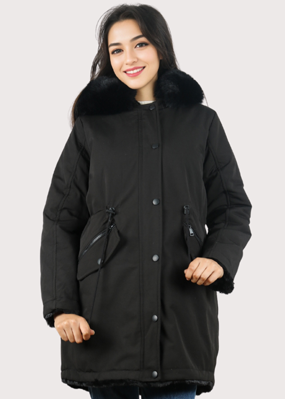 Fourrure : Elle possède une grande capuche avec un bord en fourrure très volumineux et doux.