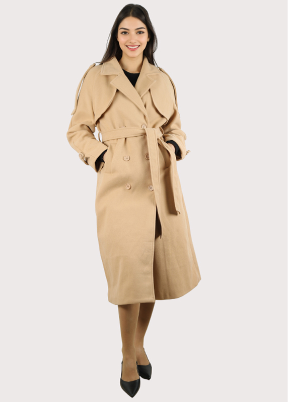 - Style : C’est un manteau long en tissu, très élégant.