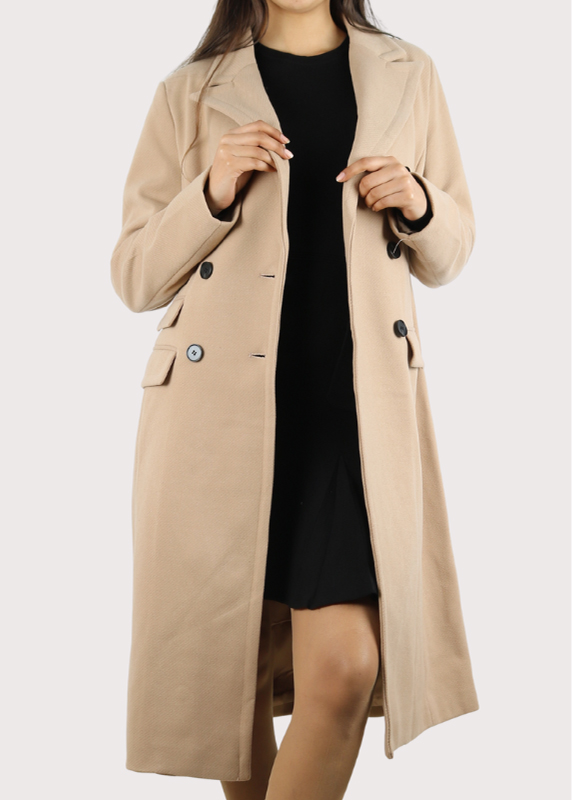 Style : C’est un manteau long et élégant en tissu.