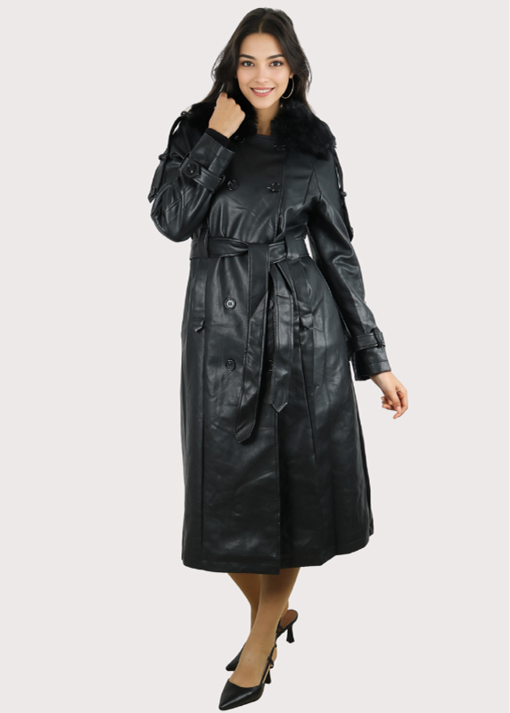 - Style : C’est un trench-coat long avec un aspect velouté ou suédé.